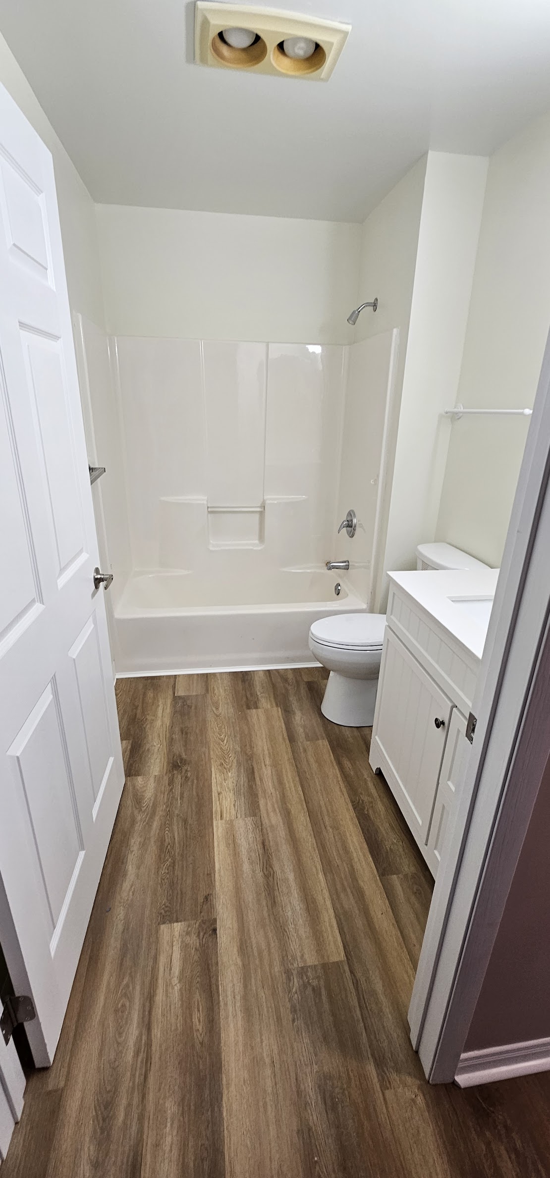 Bathroom renovation including new fixtures and surfaces